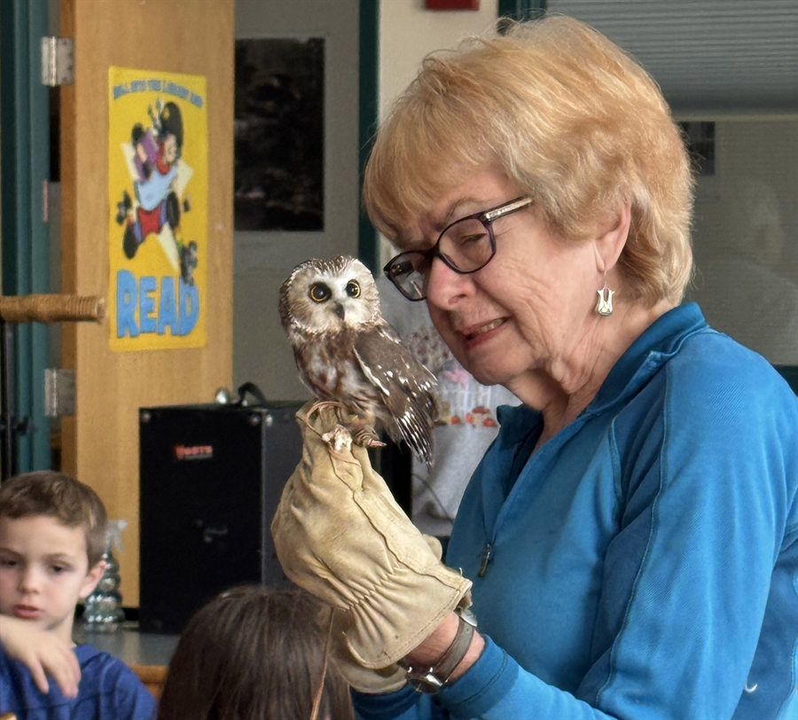 The Bolton community regularly supports our Bolton Central School students in a variety of ways. Recently the Bolton Free Library, represented by library director, Megan Baker, arranged a very special visit for our 2nd, 3rd, 4th and 5th grade students. Ms. Baker joined our students to read, The Christmas Owl: Based on the True Story of a Little Owl Named Rockefeller. The owl in the story is a Saw-Whet owl named Rockefeller.