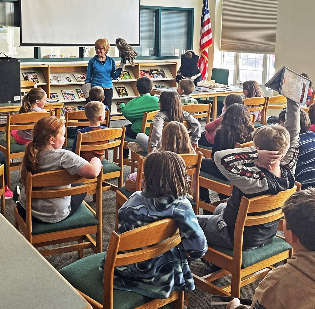 Students were also treated to some very special guests. Wildlife rehabilitator, Nancy Kimball and Linda Bennett brought Sam, the Saw-Whet owl and Justin, the Barred owl to visit with students. Our curious readers had lots of questions. Seeing these regal birds in person helped students truly appreciate their beauty and learn more about animals they could come across in their own surroundings.