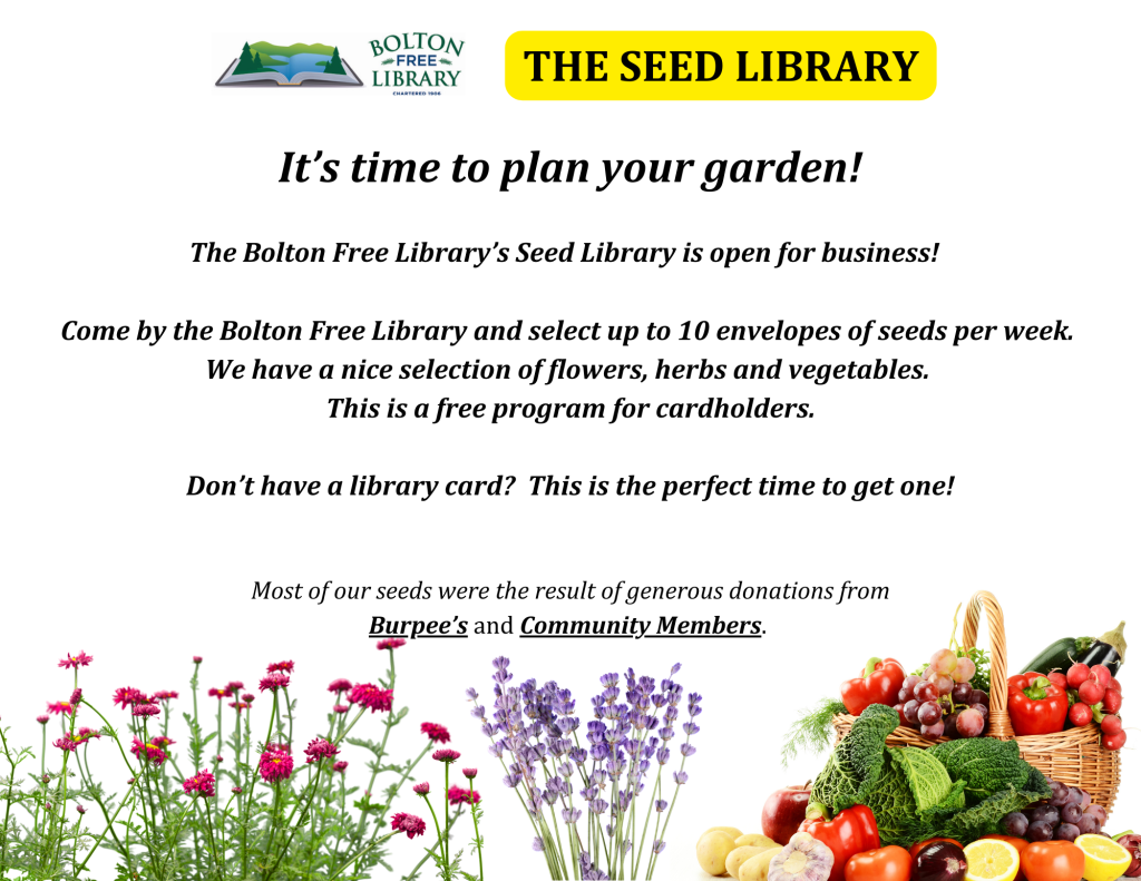 BOLTON FREE LIBRARY BOOK CLUB – We meet on the 3rd Tuesday of each month at 6:30pm. You don’t need to read the book to come to our meetings.
