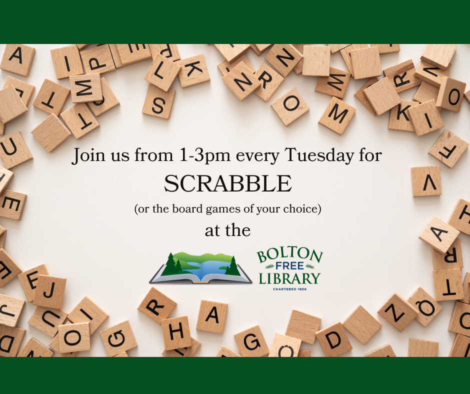 STARTING IN FEBRUARY! Join us every Tuesday from 1-3pm for Scrabble or other board games. Get out of the house and meet friends or make new ones!